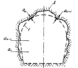 Выработка (пролет θ = 10,97 м, высота 7,77 м) заложена в грунте f = 5 ÷ 8, γ =