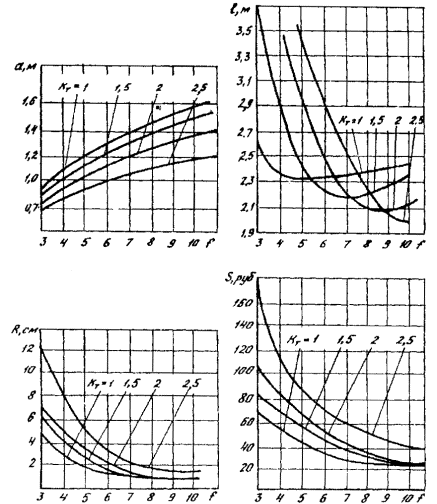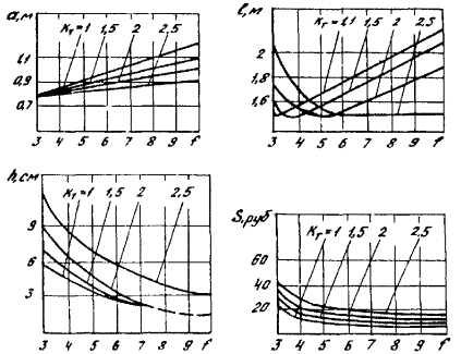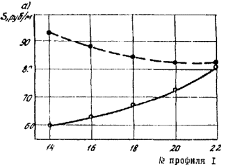 коэффициентом крепости f = 2. На графике приведены зависимости суммарной сметной стоимости конструкции крепления от номера профиля двутавра, из которого