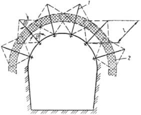 слабых и сильнотрещиноватых пород и не менее 0,5 МПа для крепких скальных. 2.4. Выбор крепи предпочтительнее осуществлять в два этапа - сначала ориентировочно выбирают вид крепи (варианты), который может быть технологически осуществлен в данных условиях строительства, а затем уточняют конструкцию и параметры крепи по совокупности инженерно-геологических и технологических факторов. 2.5. В общем случае