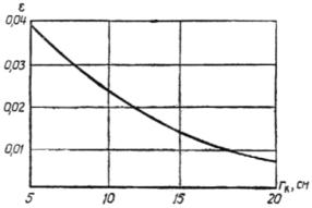 Зависимость коэффициента e от толщины забутовки rк