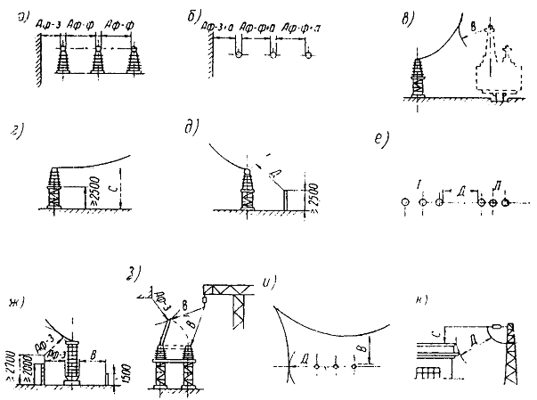 Б, В, Г, Д, Ж - изоляционные расстояния