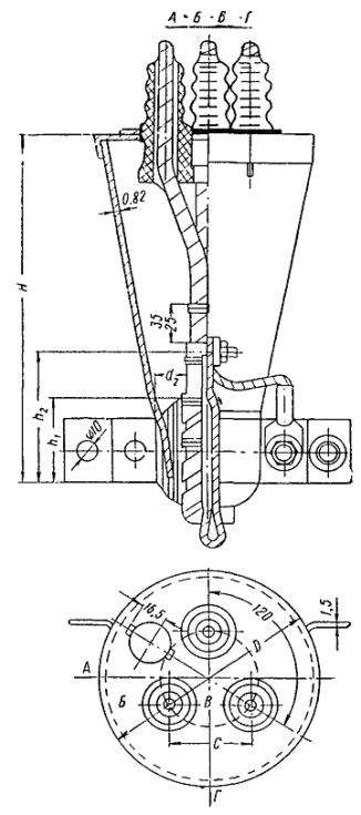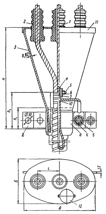 пятистержневой в фарфоровой рубашке; числа - номинальное напряжение; З - для