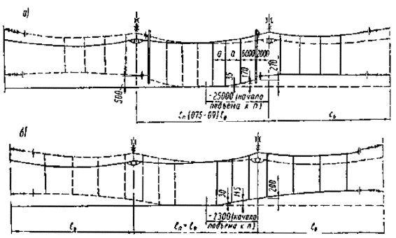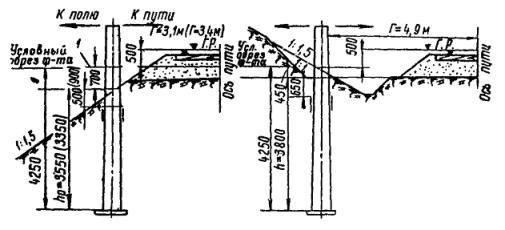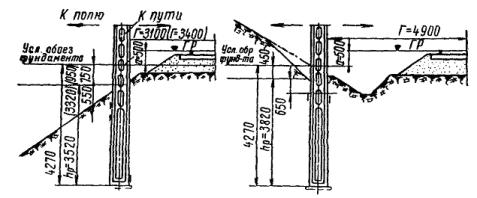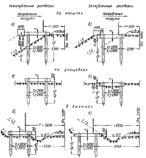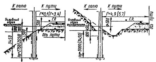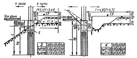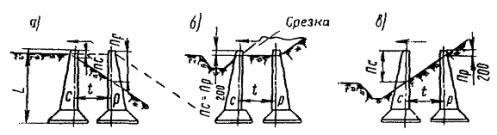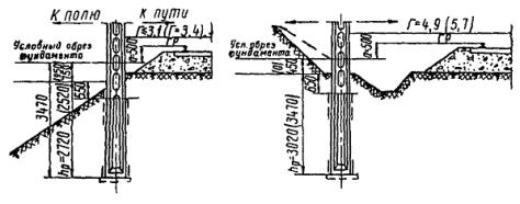 поперечин и др.) с выделением участков установки опор «с пути» и «с поля» (по