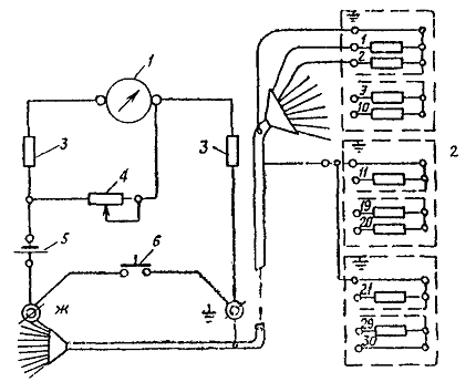 - магазин сопротивлений; 3 - сопротивления; 4 - сопротивление