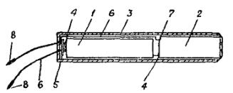 состоящий из сухого элемента от батарейки карманного фонаря и указательного