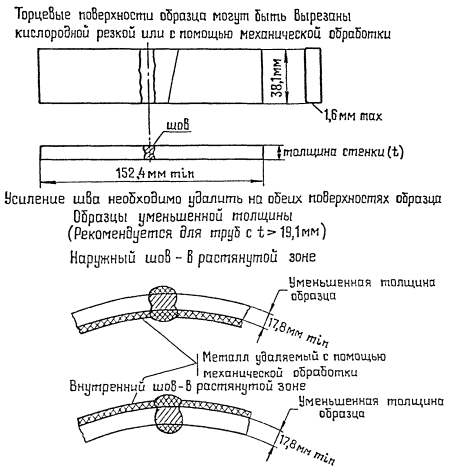 отрезок трубы с минимальной толщиной стенки. В центре шва такой трубы должны