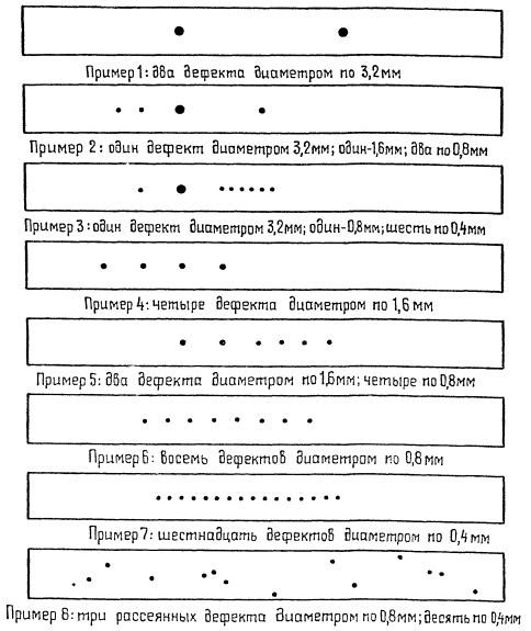 4.2. Примеры максимально допустимого распределения в швах дефектов типа круглых
