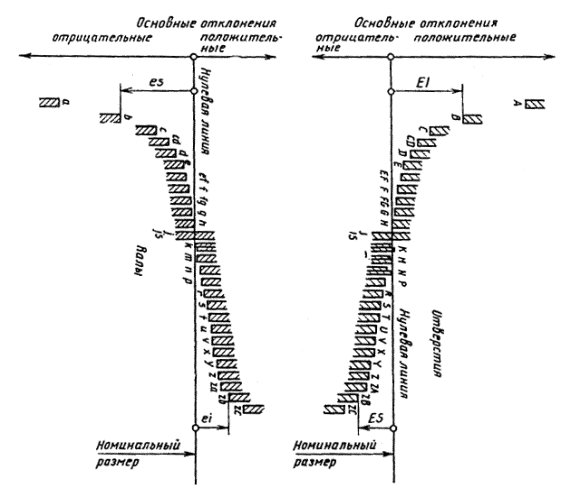 Примечание. ES - верхнее отклонение отверстия; es - верхнее отклонение вала.
