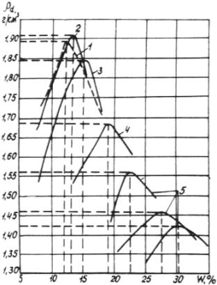 влажность песков и непылеватых супесей не должна, как правило, превышать 1,3W0, супесей пылеватых и суглинков легких - 1,2W0, других связных
