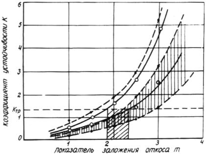 в зависимости от состава и степени влажности разрабатываемого в выемках грунта.