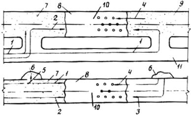 сдвиговых испытаний разрезают на две половины (плашки) в зоне сдвига, соединяют