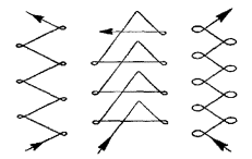 прохода электродами с покрытием целлюлозного вида. Техника сварки горячего прохода коренным образом отличается от техники сварки корневого слоя шва: • сварка происходит не опиранием, а поддержанием на весу дуги, длина которой изменяется в пределах 1,5 - 2,5 мм; • сварка корневого слоя осуществляется без продольных и поперечных колебаний, а сварка горячего прохода происходит в «рваном» ритме, как с продольными, так и поперечными колебаниями; • сварщик придает торцу электрода резкое продольное возвратно-поступательное движение с достаточно большой амплитудой при переменной длине дуги; • в нижнем положении этой траектории сварщик осуществляет незначительное поперечное колебание торца электрода с задержками на свариваемых кромках при минимальной длине дуги, а затем из положения «задержка» следует резкое, «выметающее» шлак движение вверх-вниз. Этой сложной техникой сварки сварщик достигает несколько целей: • устраняет дефекты, образовавшиеся в металле корневого слоя шва (главным образом, поры); • выплавляет шлак из «раскрытых» при шлифовке абразивным кругом зашлакованных «карманов»; • обеспечивает чуть вогнутую или, по меньшей мере, плоскую ровную подложку для выполнения последующего слоя шва. 2.6.9. Сварка неповоротных стыков труб электродами с покрытием основного вида, включая сварку корневого слоя шва, производится методом на подъем с поперечными колебаниями на минимальной длине дуги: для электродов диаметром 3,0 - 3,25 мм, как правило, не более 1,5 мм; для электродов диаметром 4 мм не более 2 мм. Способы увеличения проплавления при сварке корневого слоя шва показаны в табл. 2.6.2. 2.6.9.1. Не рекомендуется осуществлять сварку техникой резкого выброса сварочной дуги вверх до начала отекания расплавленного металла с последующим его «размазыванием» поперечными колебаниями. Техника сварки должна соответствовать одной из схем, показанных на рис. 2.6.1. Рис. 2.6.1. Типичные манипуляции торцом электрода, обеспечивающие формирование мелкочешуйчатого, равномерного шва при сварке заполняющих и облицовочного слоев шва электродами с покрытием основного вида 2.6.9.2. При наличии отклонения дуги или ее выдувания из разделки кромок необходимо устранить основную причину этого явления - магнитное дутье. С этой целью необходимо: • соблюдать правила подключения полюса «земля», которые требуют симметричного распределения магнитных масс по обе стороны от дуги; • при намагниченных трубах произвести их размагничивание путем намотки нескольких витков сварочного кабеля вокруг одной из свариваемых труб и подключения кабеля через балластный реостат на некоторое время к сварочному источнику питания. (Направление тока в кабеле определяется экспериментально по результату размагничивания; при отсутствии эффекта размагничивания концы кабеля на источнике питания меняют местами и повторяют процесс размагничивания). 2.6.10. Особенности технологии сварки