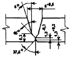 вместо образцов 2, 3 вырезают образцы 5. 2.6. Образцы для испытания на растяжение и ударный изгиб, а также стандартные образцы для испытания на статический изгиб изготавливают и испытывают в соответствии с ГОСТ 6996. Испытание на растяжение сварного соединения труб должно проводиться на поперечных плоских образцах типа XII или XIII с удалением выпуклости (усиления) шва по ГОСТ 6996. Испытания на ударный изгиб сварного соединения проводят на поперечных образцах типа IX или XI по ГОСТ 6996 с V-образным надрезом (образцы Шарпи). При испытании металла шва надрез наносят по его центру, через все слои шва перпендикулярно поверхности трубы, при испытании металла зоны термического влияния - в месте: линия сплавления + 1 - 2 мм в сторону основного металла. При вырезке образцов следует принять во внимание, что одна из чистовых поверхностей образца (после окончательной обработки) должна располагаться на расстоянии 1 - 2 мм от наружной поверхности трубы. При толщине стенки трубы более 19 мм для испытания на ударный изгиб вырезают дополнительно еще 2 комплекта образцов с V-образным надрезом, одна из чистовых поверхностей которых расположена на расстоянии 1 - 2 мм от внутренней поверхности трубы. Для стандартных испытаний на статический изгиб с расположением корня шва внутрь или наружу соответственно применяют образцы типа XXVII по ГОСТ 6996. При испытании на изгиб образцов, вырезаемых в направлении толщины стенки трубы с расположением ширины образца в плоскости, перпендикулярной поверхности трубы (образцы для испытания на «ребро»), применяют образцы типа XXVIIIa по ГОСТ 6996. Ширину таких образцов принимают равной 12,5 мм. При испытании образцов типа XXVII применяют оправку диаметром 4s ± 2 мм, где s - толщина образца (металла трубы), мм; для образцов XVIIIa диаметр оправки составляет 50 ± 2 мм. 2.7. Временное сопротивление разрыву сварных соединений, определяемое на плоских разрывных образцах со снятым усилением, должно быть не ниже нормативного значения временного сопротивления разрыву основного металла труб. 2.8. Для сварных соединений, выполненных дуговой сваркой, среднее арифметическое значение угла изгиба образцов при испытании согласно ГОСТ 6996 должно быть не ниже 120°, а его минимальное значение не ниже 100°. Для сварных соединений, выполненных контактной стыковой сваркой, среднее арифметическое значение угла изгиба образцов при испытании согласно ГОСТ 6996 должно быть не ниже 70°, а его минимальное значение - не ниже 40°. При подсчете среднего значения все углы больше 110° принимаются равными 110°. 2.9. Ударную вязкость металла кольцевых сварных соединений газопроводов определяют при температуре испытания - 20 °С. Величина ударной вязкости металла сварных соединений, определяемая на образцах с V-образным надрезом (образцы типа Шарпи) при принятой температуре испытаний, должна быть не менее 34,4 Дж/см2 (3,5 кГс/см2). Ударная вязкость определяется как среднее арифметическое из результатов испытаний при заданной температуре трех образцов, при этом минимальное значение ударной вязкости для одного образца должно быть не менее 29,4 Дж/см2 (3 кГс/см2). 2.10. Макрошлифы сварных соединений, выполненных двухсторонней сваркой под флюсом, в количестве не менее трех от одного стыка подвергают травлению с целью определения соответствия размеров швов см. п. 9.8. В поперечном сечении шлифа должны отсутствов