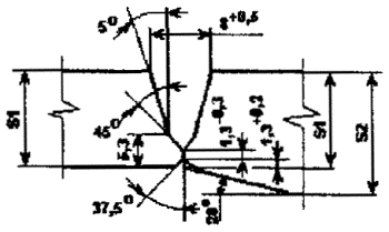 т.д. 7. Специальные сварочные работы7.1. К специальным сварочным работам относятся: • вварка в нитку газопровода толстостенных соединительных деталей (фитингов), запорной и распределительной арматуры; • сварка захлестов; • приварка катодных выводов; • заварка технологических отверстий; • ремонт сварных соединений. 7.2. Сварка разнотолщинных труб и элементов труба-деталь трубопровода и труба-арматура, разнотолщинность которых превышает пределы, оговоренные в п. 6.10., осуществляется: • путем вварки между ними катушки промежуточной толщины шириной не менее 250 мм или переходных колец, изготовленных в заводских условиях; • путем непосредственного соединения специально обработанных свариваемых торцов (рис. 5). а Обработка