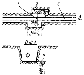 Сварка встык разнотолщинных элементов 5.1.1. При непосредственной сварке (без переходников и трубчатых вставок промежуточной толщины) соединений, разность толщин которых превышает требования п. 2.4.1 настоящей Инструкции, предварительно должна быть выполнена специальная подготовка кромок изнутри и (или) снаружи более толстостенного элемента с толщиной стенки t3 до толщины свариваемого торца t2, которая не должна превышать 1,5 толщины менее толстостенного элемента t1 (см. рис. 5 СП). В результате условием непосредственного соединения является величина «новой» толщины t2. При этом t2 £ t1. По величине t3 определяются такие технологические параметры как необходимость и величина: • предварительного подогрева; • местной послесварочной термической обработки (см. раздел 6). В случае отсутствия специальных требований завода - изготовителя температура подогрева должна быть при толщине торца крана или фитинга: • 28 мм и менее................................. 150 °С • более 28 мм..................................... 200 °С 5.1.2. Стыки сварных соединений по п. 5.1.1 должны быть подварены изнутри по всему периметру с обеспечением геометрических параметров, регламентированных п. 2.6.10.4. 5.1.3. Сварка разнотолщинных элементов должна проводиться за один прием без перерыва. 5.1.4. Если «юбка» арматуры не имеет заводского приварного патрубка, соответствующего размерам и марке стали свариваемой трубы, а ее состав отличается от химического состава свариваемой трубы в сторону большего легирования (никелем, алюминием, хромом, содержанием марганца более 2 % и т.д.), то в этом случае требуется выбор специальных материалов и специальной технологии по рекомендации Заказчика. В данном случае условия сварки оформляются актом, где указываются: • номер арматуры; • марка стали, химический состав «юбки», и ее прочностные свойства; • толщина t2 свариваемого торца; • условия предварительного подогрева и (при необходимости) послесварочной термообработки; • схема последовательности заполнения разделки; • клейма сварщиков; • заключения радиографического (и ультразвукового) контроля. Пример технологической карты на сварку соединительных деталей приведен в прил. 6. 5.2.1. Место для захлеста при опережающем строительстве переходов и горизонтальных углов поворота (см. раздел 2.1) следует выбирать на прямолинейных участках. 5.2.2. Приямки следует отрывать по ходу разработки траншей с точной привязкой к месту захлеста. Размеры приямка должны быть не менее показанных на рис. 5.2.1. Рис. 5.2.1. Расположение приямка при сварке захлеста: 1 - стык захлеста; 2 - приямок в траншее; 3 -