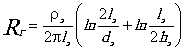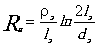 где: rз - удельное сопротивление грунта, Ом.м.; lэ - длина электрода, м; dэ - диаметр электрода, м; hэ - расстояние от поверхности до середины заземления,