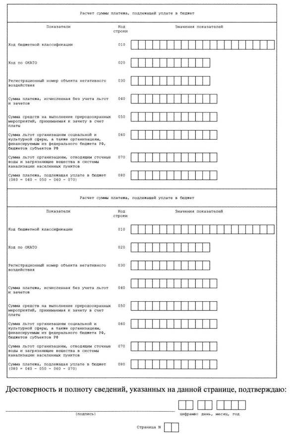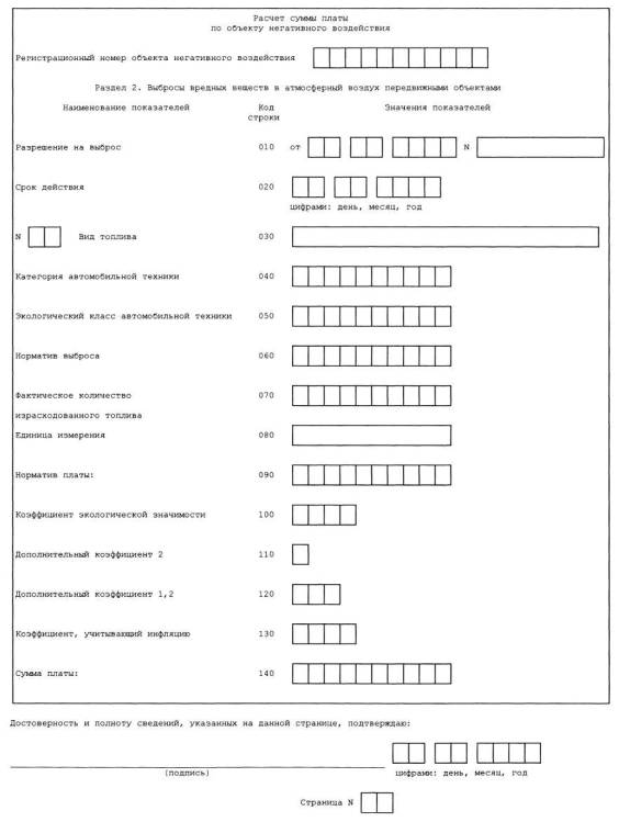 формы Расчета платы за негативное воздействие на окружающую среду На основании пункта 2