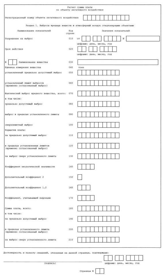 негативное воздействие на окружающую среду и порядка заполнения и представления