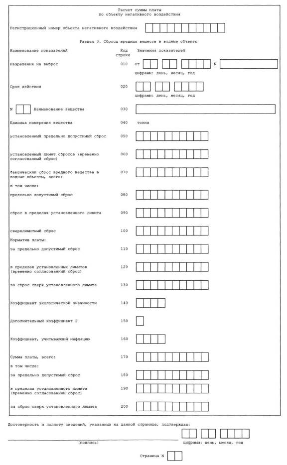 номер объекта негативного воздействия ___________________ Раздел 3. Сбросы вредных веществ в водные