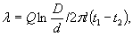 где t1 и t2 - температура на поверхности трубы и изоляции,