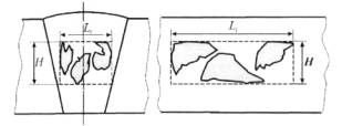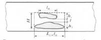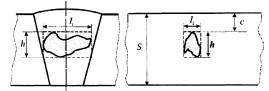 стенки трубы и не имеющий выхода на внешнюю и внутреннюю поверхности трубы (пора, шлаковое включение, несплавление по разделке, внутренняя трещина и т.д.). 3.4 высота дефекта h, мм: Линейный размер проекции дефекта по высоте шва на плоскость, перпендикулярную оси трубопровода или на плоскость, проходящую через дефект и ось трубопровода. 3.5 глубина залегания дефекта с, мм: Минимальное расстояние от границы внутреннего дефекта до ближайшей поверхности сварного соединения (трубы). 3.6 групповой дефект: Несколько близко расположенных единичных дефектов, принимаемых после схематизации как один новый