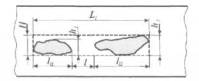 нарушением целостности металла, расположенный на внешней или внутренней поверхности трубы (непровар в корне, подрез, поверхностная трещина и т.д.). 3.23 радиационный контроль: Вид неразрушающего контроля, основанный на регистрации и анализе ионизирующего излучения после взаимодействия с контролируемым объектом. 3.24 радиографический контроль: Метод радиационного контроля с фиксацией изображения на пленке (на бумаге). 3.25 радиоскопический (рентгенотелевизионный) контроль: Метод радиационного контроля с наблюдением изображения на экране. 3.26 расстояние между соседними дефектами L, мм: Минимальное расстояние между границами соседних дефектов. 3.27 расчетный дефект-аналог: Математическая модель исходного дефекта, используемая при проведении оценки его допустимости. В расчетном дефекте- аналоге характеристики исходного
