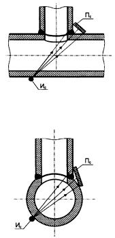 применяться для уточнения границ дефектных участков кольцевых сварных соединений, обнаруженных другими методами контроля, а магнитный - также для обнаружения внутренних дефектов, расположенных близко к поверхности. 7.9 Нормы оценки кольцевых сварных соединений рассчитаны в
