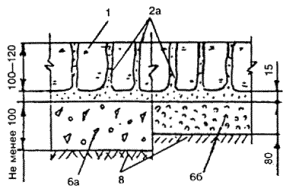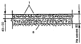 вод ниже глубины промерзания основания не менее чем на 0,8 м; выполнение по основанию