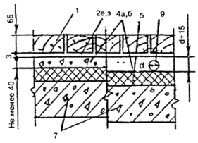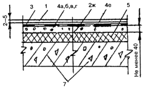 нижележащим слоям пола на перекрытии; теплоизоляция - слой пола, уменьшающий общую теплопроводность пола; звукоизоляция - слой пола, предотвращающий проникание ударного шума в помещение или из