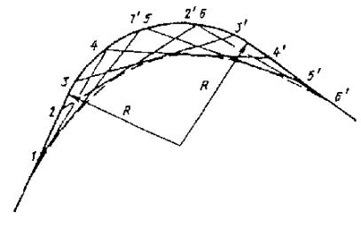 где Rк.пл - радиус кривизны ведущей линии в картинной плоскости, м; Lк.пл - длина дуги ведущей линии в картинной плоскости, м; Sк.пл - расстояние от наблюдателя до картинной плоскости, м;