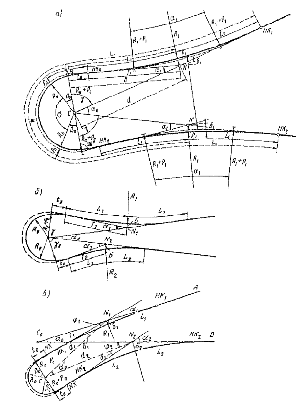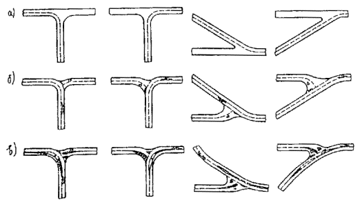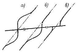 Рис. 14. Схемы серпантины: а - 1 рода симметричной; б - то же, несимметричной; в
