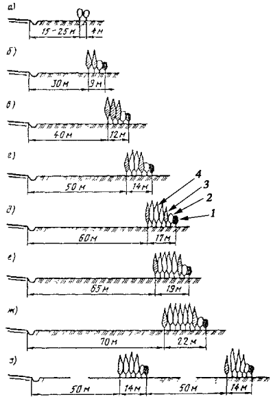 полосы и обочин; а - ширина ограждения (размеры даны в метрах)