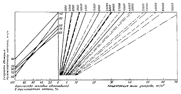 расчетной интенсивностью движения свыше 20000 прив.ед/ч, под чертой - менее