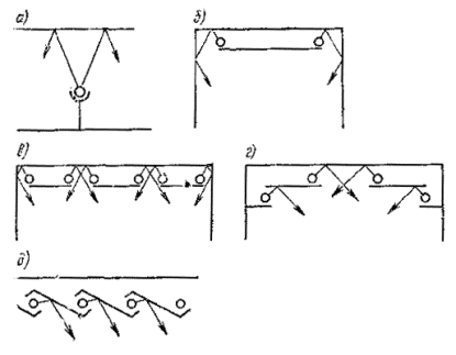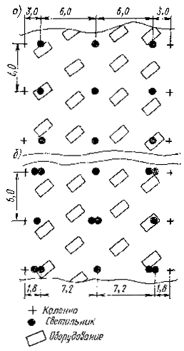 проемов (при боковом освещении) или к продольной оси пролетов помещения. В