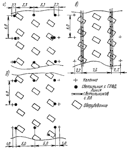 верхней зоне помещения равномерно (общее равномерное освещение) или