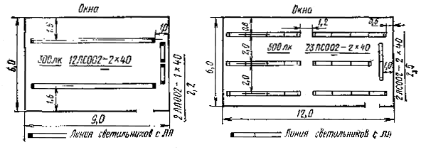 расстояние между светильниками в ряду, м; ly - расстояние между рядами светильников,