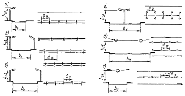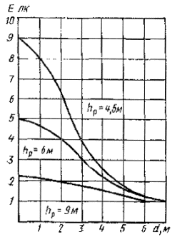 дороги, улицы, м; d - глубина, м; dп - глубина помещения, м; dф - шаг установки фонарей, м; Е - освещенность, лк; Ев - освещенность в вертикальной