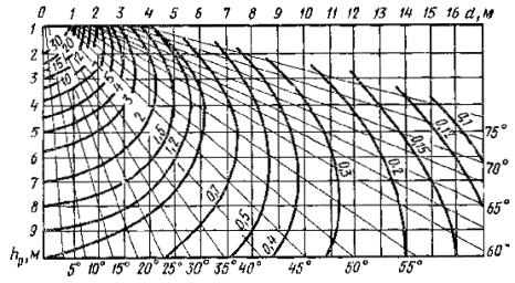 поверхности до выходного отверстия светильника (фонаря), м; hсв - высота установки светильников над поверхностью