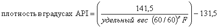 относительной плотностью (удельным весом) или плотностью в градусах API при