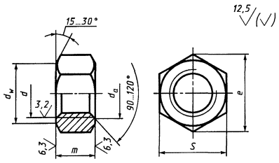 резьбы с полем допуска 6Н, класса прочности 5, без покрытия: Гайка М12-6Н.5 (S18) ГОСТ 5927-70 То же, с