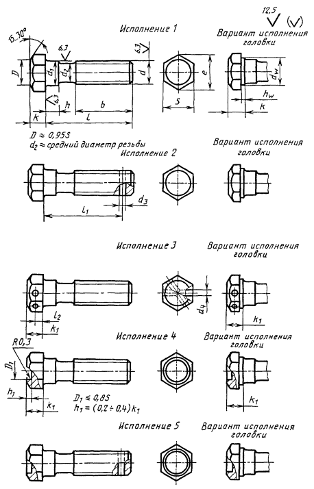 потребителем изготавливать болты исполнений 1 и 2 с высотой головки k1.