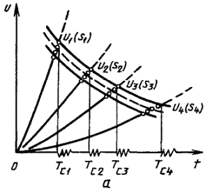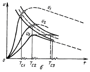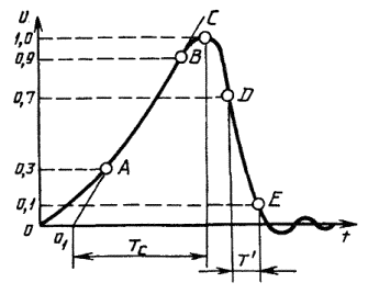 значения напряжения до максимального и последующим более медленным снижением