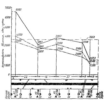 данное сечение дороги в обоих направлениях (интенсивность движения), а также о