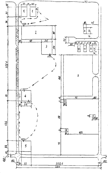 6. Санитарно-бытовые помещения; 7. Склад ГСМ; 8.