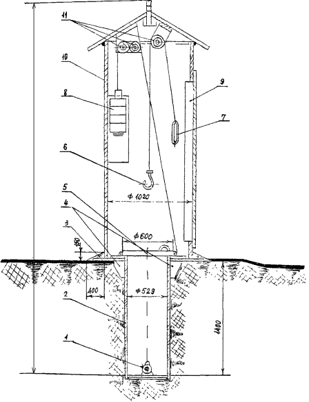 косынки. 5. Крышка колодца. 6. Грузоподъемный крюк. 7.