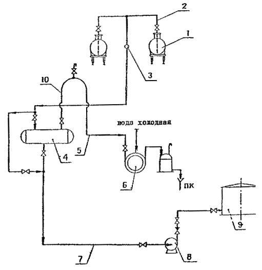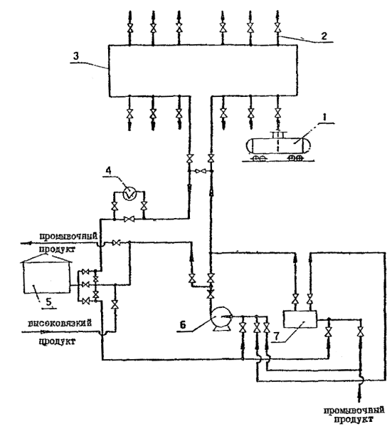 Принципиальная схема налива высоковязких продуктов 1 - цистерна, 2 -
