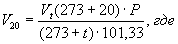 Vt - объем воздуха, отобранный для анализа, л; Р - барометрическое давление, кПа (101,33 кПа = 760 мм рт. ст.); t - температура воздуха в месте отбора пробы, °С. Для удобства расчета V20 следует пользоваться таблицей коэффициентов (приложение 2). Для приведения воздуха к стандартным условиям надо умножить Vt на соответствующий коэффициент. Коэффициенты для приведения