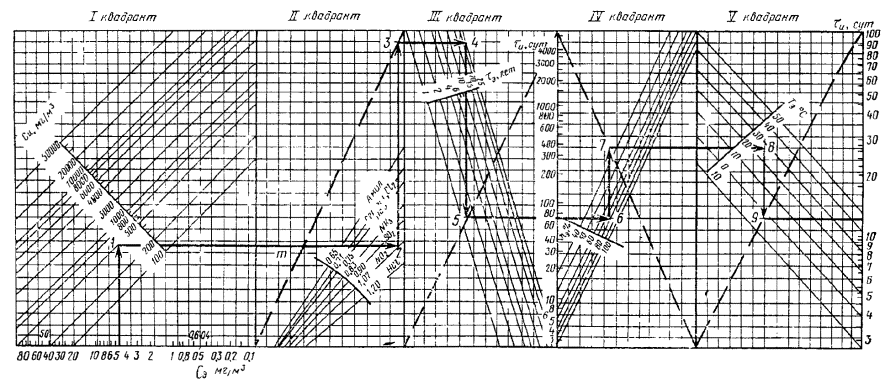определяют в последовательности, указанной ниже (на номограмме - указана стрелками):
