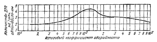 авт./сут). Графики коэффициентов аварийности строят по методике загородных автомобильных дорог. Положим итоговые