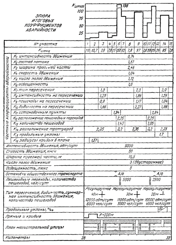 итоговые коэффициенты аварийности и по остальным участкам. 10. Суммарные приведенные
